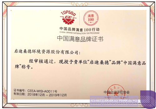 啟迪桑德獲“中國品牌滿意100”殊榮打印