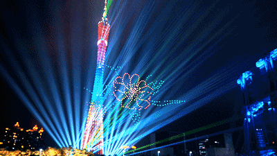 晚會表演精彩紛呈,而其中800架無人機演繹《新彩云追月》,帶觀眾領略前所未有的美的境界。此次無人機編隊表演由遠度科技和高巨創新合力打造,從藝術設計到技術實現再到完美無瑕的現場實施,雙方團隊傾盡全力,各施其責,為此次晚會量身定制了一場集光影科技、現代藝術、嶺南文化于一體的視覺盛宴。