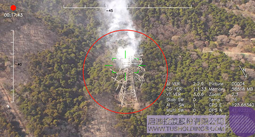 沈陽(yáng)棋盤(pán)山火場(chǎng)分布面積廣,兩個(gè)大火點(diǎn)相距10km以上,我們的3V復(fù)合翼無(wú)人機(jī)從指揮處起飛,一次飛行即將所有火點(diǎn)巡查完畢。并在重要火點(diǎn)處進(jìn)行盤(pán)旋飛行,對(duì)火場(chǎng)進(jìn)行360°觀(guān)察,標(biāo)注位置和火勢(shì)情況信息,搭載的三軸30倍光電吊艙可隨時(shí)拉近查看地面細(xì)節(jié)。做到從整體到局部的完整觀(guān)察。同時(shí)還可搭載微光和紅外載荷,在夜間及通過(guò)溫度觀(guān)察隱藏火點(diǎn)。