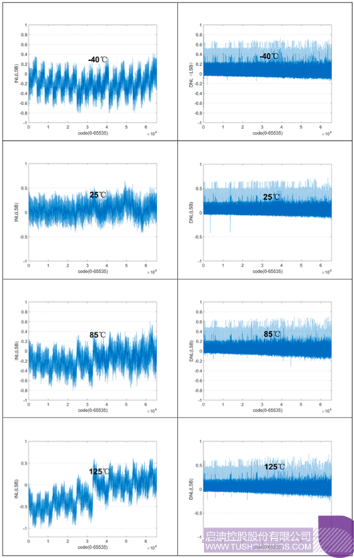 不過,這一格局即將被打破。經(jīng)過一年多的開發(fā),智毅聚芯成功突破16bit高精度DAC核心技術(shù),產(chǎn)品實測結(jié)果顯示,在-40℃~85℃溫度范圍內(nèi),積分非線性(INL)小于1LSB,微分非線性(DNL)小于1LSB。在-40℃~125℃溫度范圍內(nèi),積分非線性(INL)小于2LSB,微分非線性(DNL)小于1LSB。
