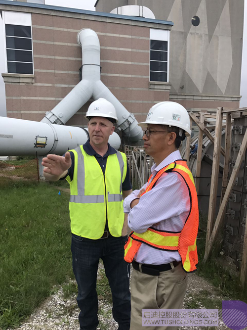 ▲ BIOREM首席執行官Derek Webb向啟迪控股高級副總裁、啟迪水務集團董事長趙清(右)介紹項目進展