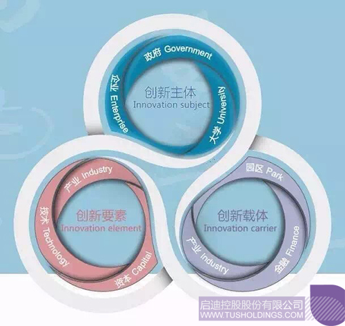 啟迪控股在多年的科技服務(wù)實(shí)踐中,以創(chuàng)新為基點(diǎn),以產(chǎn)業(yè)為抓手,提煉出“創(chuàng)新主體:政府+企業(yè)+大學(xué),創(chuàng)新載體:園區(qū)+實(shí)業(yè)+金融,創(chuàng)新本體:技術(shù)+產(chǎn)業(yè)+資本”三個(gè)三螺旋多重交織的立體三螺旋模型,成為科技創(chuàng)新和產(chǎn)業(yè)升級(jí)的重要驅(qū)動(dòng)。在此基礎(chǔ)上,把立體三螺旋模式與啟迪控股巨大的創(chuàng)新平臺(tái)網(wǎng)絡(luò)和啟迪控股匯聚的各路精英團(tuán)隊(duì)相結(jié)合,形成新的三合一,這就是啟迪控股創(chuàng)造與實(shí)踐的“集群式創(chuàng)新”理論。