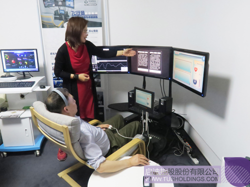 參觀過程中,梅萌還向陳旭一行介紹了清華幸??萍紝嶒炇业娜腭v項目,其中大都來自清華大學心理學系、電子系以及美術學院等院系,有可以助眠和監(jiān)測睡眠的眼罩,有通過監(jiān)測腦波獲取用戶當前集中程度和疲勞度的頭帶,也有心理學與虛擬現(xiàn)實技術相結(jié)合的VR設備。陳旭一行還饒有興趣地體驗了部分入駐產(chǎn)品。啟迪控股副總裁、清華幸??萍紝嶒炇抑魅螐埥鹕?,清華幸??萍紝嶒炇覉?zhí)行主任王涌、副主任蘇塔娜參加上述活動。