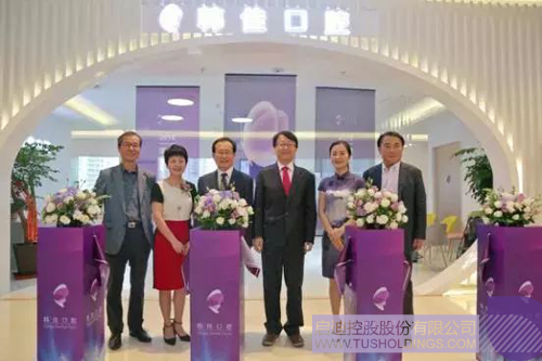 韓國前總理李海瓚(左三)和蘇州啟迪常務副總經理、韓佳口腔董事長華瑩(左二)等