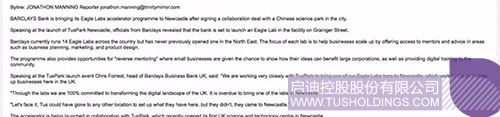 于近期正式投入運營的英國紐卡斯爾啟迪科技園,為中英兩國在科技創新領域的合作打開了新的窗口,獲得外媒廣泛關注和報道,以下為部分英國媒體報道節選:
