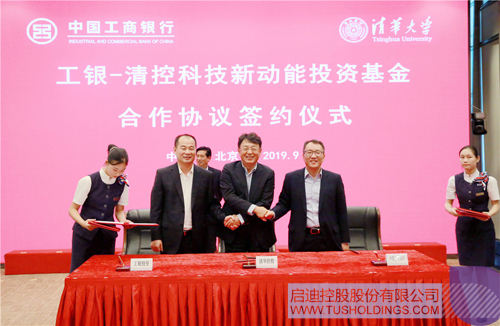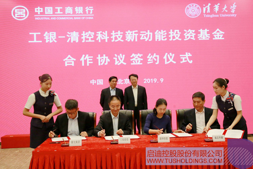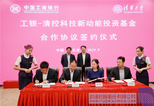 2019年9月24日,“工銀-清控科技新動能基金”合作簽約儀式在中國工商銀行(以下簡稱“工行”)總行舉行。工行總行副行長胡浩,總行投資銀行部總經理李峰,工銀金融資產投資有限公司黨委書記、總裁張正華,清華大學常務副校長王希勤,清華控股黨委書記、董事長龍大偉,清華控股黨委副書記、總裁聶風華等出席儀式。