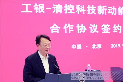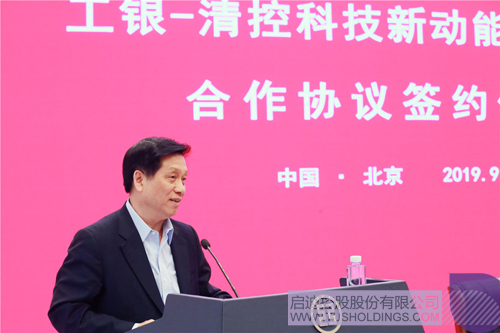 胡浩在致辭中表示,清華大學是我國高等教育的一面旗幟,清華控股是清華大學服務社會的一個重要窗口,也是連接學校學術成果與社會資源的紐帶。在當前以科技創新強國的戰略背景下,相信未來清華及清華控股引領國家學術創新、助力科技成果轉化的戰略職能將愈加重要、愈顯突出。積極支持科技創新,利用金融手段扶持高科技企業發展,也是工行作為國有大型商業銀行的歷史使命和社會責任。近年來,工行在踐行國家創新驅動發展戰略、服務實體經濟發展的實踐中,也取得了豐碩的成果。工銀金融資產投資有限公司是工行開展股權投資的重要平臺之一,旨在幫助優質企業降杠桿、降本增效,為企業發展提供長期支持。清華與工行長期保持著密切的聯系與合作,本次基金合作協議的簽署,標志著清華與工行的合作進入新的發展階段,將開啟雙方合作的新篇章,以金融助力產學研相結合,共同推動科技成果轉化,為我國技術升級、國民經濟發展做出新的更大貢獻。