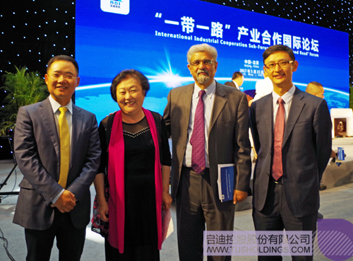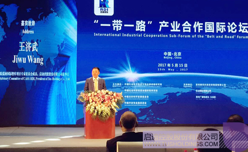 2017年5月15日, “一帶一路”產業合作國際論壇在京舉行。來自產、學、研等領域的專家匯聚一堂,共同探討“一帶一路”沿線國家的產業合作。會議由全國人大常委會委員、外事委員會副主任委員,中國社會科學院藍迪國際智庫項目專家委員會主席趙白鴿主持。啟迪控股董事長王濟武作為中國社會科學院藍迪國際智庫項目專家委員會成員且唯一企業代表,在論壇開幕致辭中發言。來自法國、埃及、印度尼西亞等國的政要和國內知名專家學者參加活動。