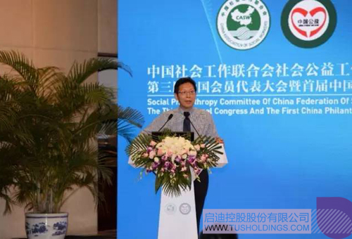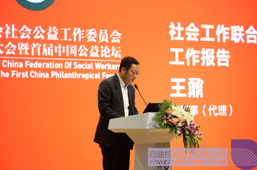 ▲ 啟迪控股董事長、新任中國公益委員會主任王濟武講話