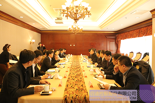 2月15日,遼寧省撫順市市長葛海鷹,副市長何慶、朱光明一行到訪啟迪控股,與啟迪控股總裁袁桅,啟迪控股常務副總裁、啟迪科技城董事長陳響等就促進雙方戰略合作進行深入洽談磋商。
