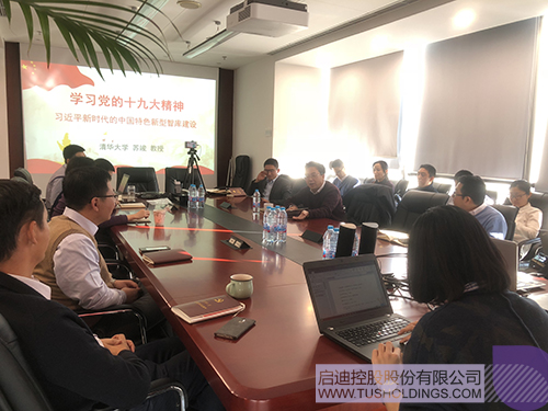 蘇竣教授主要圍繞“黨的十九大精神”、“智庫建設內涵及意義”兩個方面展開闡述,對黨十九大報告中的“新時代中國特色社會主義”、“社會主要矛盾的變化”、“以人民為中心”等相關內容進行了分析,并結合啟迪實際經營管理的實際情況進行了互相交流和探討。